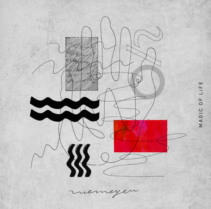 これまでもイラストをメインに、アート性の高い作品が多かったMAGIC OF LiFEのジャケット。今作はファッショングラフィックスに強いVenirでグラフィックデザイナーを務める司城智恵美がジャケットデザインを担当。 柔らかい線画と幾何学模様は赤と白、濃淡を含む黒のみで構成されている。 表1、線画の延長でサラッと描かれるタイトルと縦置きにレイアウトされたバンド名、十分な余白をとったレイアウト。まるでひとつの絵画のようだ。Venirでの仕事だけでなく、ZINE制作やTシャツデザインなどにも積極的に挑む根っからデザイン好きの司城だからこその靭やかさとクリエイティビティが発揮されている。しかしあくまでもさりげない空間の美学だ。ブックレットに目をやると、各曲タイトル&作詞作曲クレジットは表1の構成を意識した縦置きレイアウト。幾何学模様も散りばめられ、シンプルにして模様が音に遊ぶようなワクワク感も感じさせてくれた。
